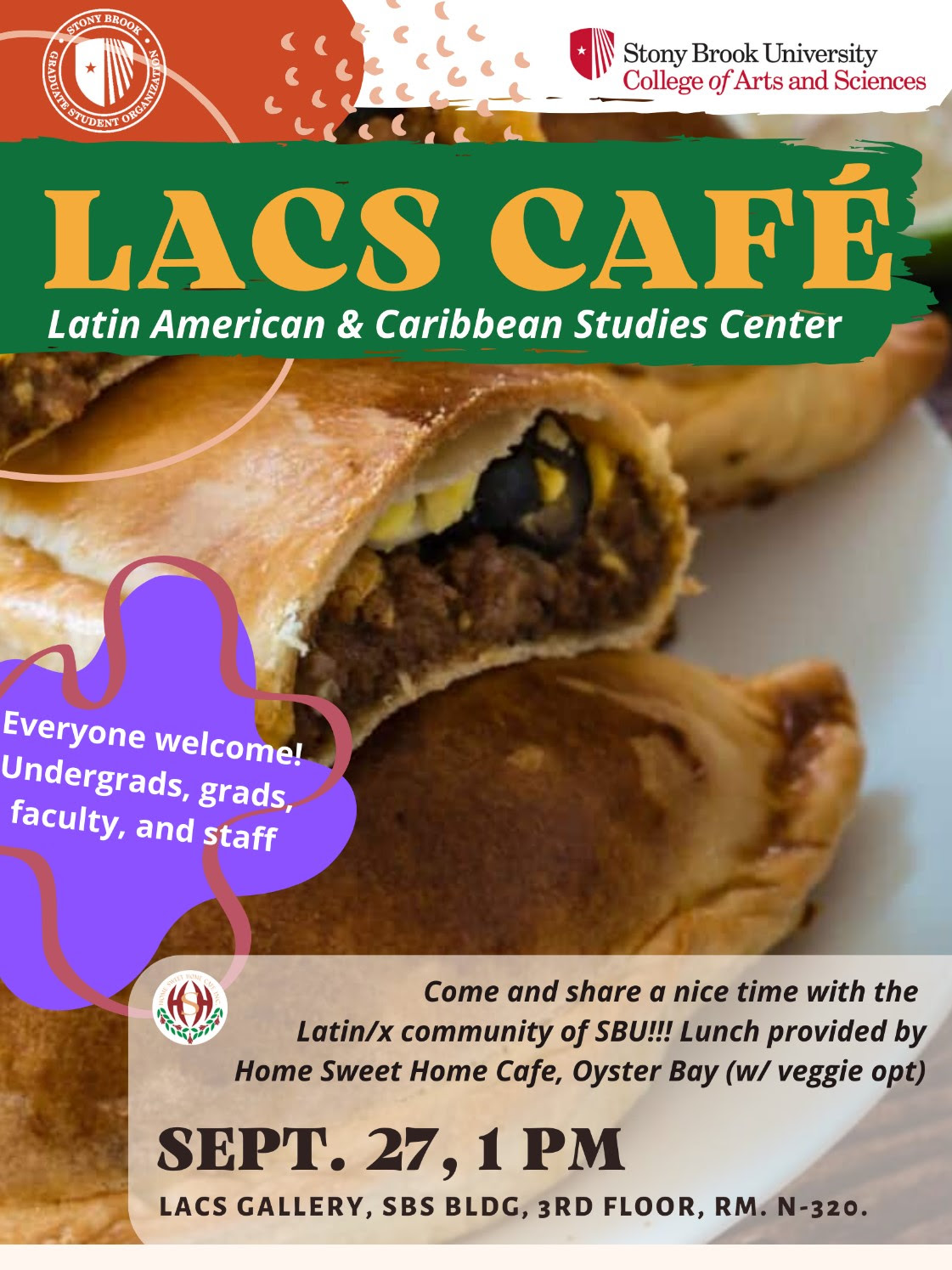 Come and share a nice time with the Latin/X community of SBU! Empanadas, coffee, and dessert will be provided.