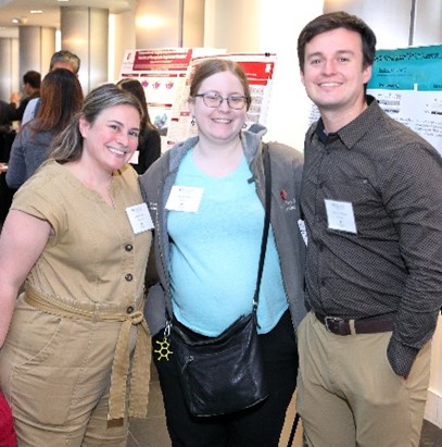 saFifty-eight posters were presented in two poster sessions during the symposium and the best three posters were selected for  Poster Awards. The award-winning posters this year were presented by Dr. Jacob Houghton, Chair of the Posters Session, to Sweta Anantharaman a graduate studentfrom the research group of Dr. Elizabeth Boon for her poster titled: “The Role of the NosP associated Histidine Kinase NahK in Nitric Oxide-Stress Resistance in Pseudomonas nipaeruginosa” and Nipuni Gunawardhana from the research group of Dr. Scott Laughlinfor her poster titled: “Cell  Specific Delivery of Small Molecule Cargo for Manipulating Astrocytes”.  Also, Ian Outhwaite, a graduate student in the laboratory of Dr.iou Markus Seeliger, for his poster titled “Death by a Thousand Cuts – Combining Kinase Inhibitors for Selective Target Inhibition and Rational Multitargeting”.  Each of the winners was awarded a check in the amount of $250, an award certificate and all of them were invited to attend the Symposium dinner with the Plenary Lecturers and ICB&DD faculty.