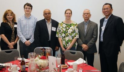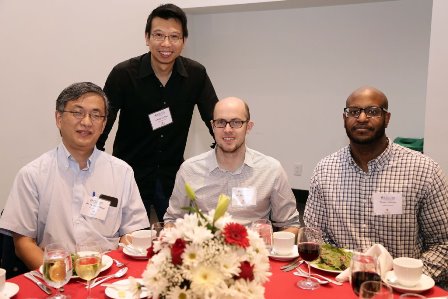 The Seventeenth ICB&DD Annual Symposium culminated with a wonderful dinner in the University Student Activities Center. Among the attendees were Miguel Garcia Diaz, Interim Vice-President for Research and  Dr. Stanislaus Wong, Chair of the Department of Chemistry, They both acknowledged the significance of the ICB&DD as it has been a good model to unite collaborative efforts amongim academia and industry. They also commended Dr. Ojima for his successful leadership, the ICB&DD operation and a seventeen year-long cutting-edge symposia. The ICB&DD symposium is very prestigious and widely recognized for being a leading event on campus.  It gives the opportunity to the scientific community from East, West and South campus to come together and promote the exchange of innovative ideas among speakers, faculty, staff, and students.  Dr. Ojima presented an appreciation plaque to this year’s Symposium Chair, Dr. Markus Seeliger.