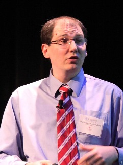 slDr. Matthew Parker also introduced the seventh and final Plenary Lecturer, Dr. Scott Laughlin,Associate Professor of Chemistry, Stony Brook University who presented a lecture titled “Targeting Astrocytes Across the Blood Brain Barrier”.  The research group of Dr. Laughlin focuses on using chemistry to understand the architecture of the  brain's functional units called neural circuits. In one such project, his research laboratory has identified a chemical scaffold that enables visualization of astrocytes and neuron-interacting astrocytes in the brains of both mammals and zebrafish. Dr. Laughlin discussed this new class of chemical astrocyte label and its ability to cross the blood brain barrier, which enables new applications for these compounds in the fields of drug delivery and human brain imaging.