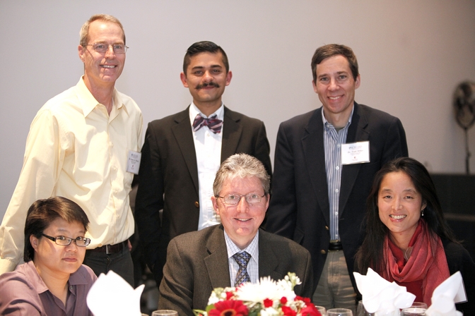 (from left to right) Drs. Peter Tonge, John Gerlt, Celia Schiffer, Carlos Simmerling, Russell Petter, Stephen Frye and Iwao Ojima