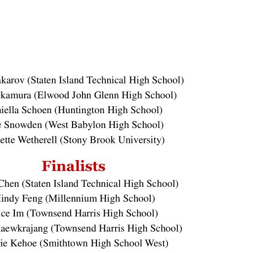 “Track: The Mental Game”Rachel Kitagawa (Syosset High School)“You have to run with your heart, not just for yourself, but for each other. When you feel like giving up, know that everyone else is facing the same pain, and they aren’t giving up.” I hear my coach say.