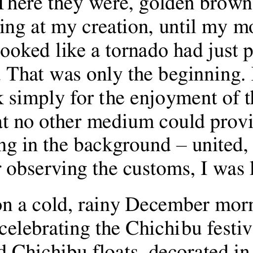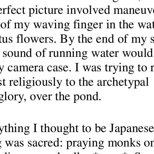 “Reflections on Japan”Hein Aung (Columbia University)“... it was as if he were watching a tableau in a dream — and that was no doubt the working of his strange mirror,” Kawabata Yasunari opens his most famous novel, Snow Country, with his protagonist peeping at a girl nursing — what he assumes to be — her sickly husband. Through his train car window, the protagonist, Shimamura, stares at the girl’s reflection. Despite the perverseness of a description of a man staring at a girl intently, for hours, Shimamura’s musings are not perverted. Offhand, one could take his actions as voyeuristic, but the pleasure he feels is not sexual, but, rather, sublime. The “unexplainable beauty” of the girl’s face superimposed onto the moving mountainous landscape compels his chest to rise. The narrator describes the mirror having “unreal, otherworldly power”. Shimamura seems to rejoice more in the unreal than the real. Hence, he is an expert in the art of Occidental dance, without ever having seen a single performance. Out of a dissatisfaction in the “old tradition,” Shimamura scours pictures, programs, and posters of the art. Oddly enough, Shimamura’s world vaguely resembles my perception of Japan — mirrored, yet inexplicably taking.