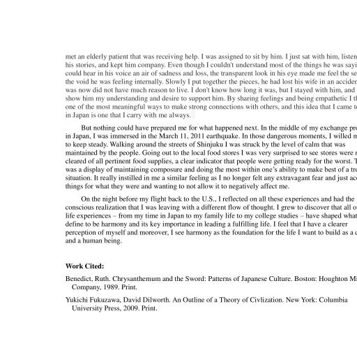 High School Division 1st Place Best Essay Award & Consul General of Japan Special Award