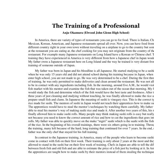 In Japan, high school sports are approached similarly to how my track coach mentors me. “Supokon” is the combination of the words, sports and “konjo” (guts). Japanese athletes in the Olympic Games are one of the most successful in sports of patience, focus, and self-control. Martial arts such as karate, sumo, judo, and kendo, use the philosophy of “Supokon” to teach that losing is not an option. Second place is the first to lose and that’s why their drive is like no other. Stereotypically, Japanese may not be the physically superior athletes due to their body type; however, their spiritual state of mind helps them get over that hindrance and still be a competitor.
