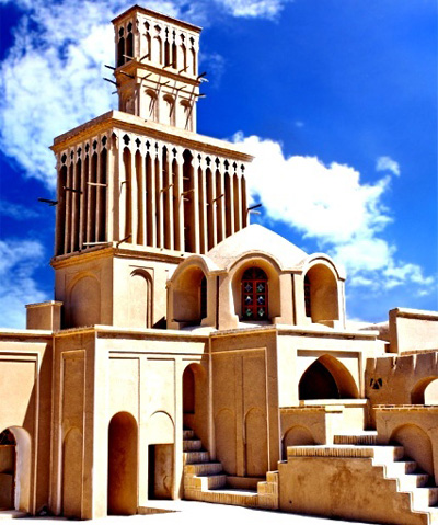 A windtower (wind catcher) (Persian : بادگیر bâdgir : bâd "wind" + gir "catcher") is a traditional Iranian architectural element to create natural ventilation in buildings. Windcatchers come in various designs: unidirectional, bidirectional, and multidirectional.