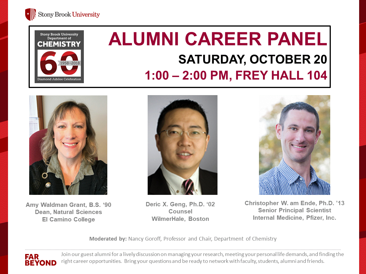The Department of Chemistry welcomes Dr. Clare P. Grey, Geoffrey Moorhouse-Gibson Professor of Chemistry, University of Cambridge to be our distinguished speaker for the 2018 Franklin Award Lecture, on Friday, January 26, 2018 at 3:00 pm in the Charles B. Wang Center Theater. The title of her talk is " Developing and Applying New Tools to Understand How Materials for LI and "beyond-Li" Batteries and Supercapacitors Function." The purpose of the endowment is to sponsor an annual lecture in inorganic chemistry by an internationally renowned scholar. Light refreshments will be served at 2:30 pm in the Wang Center Theater lobby. For further information, please contact the Chemistry Department at 632-7885. Read more
