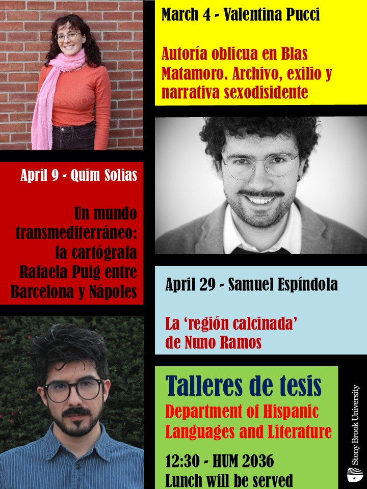 March 4 Taller de tesis. Valentina Pucci. Autoría oblicua en Blas Matamoro. Archivo, exilio y narrativa sexodisidente. Wed March 4, 12.30 pm in HUM 2036. See poster
