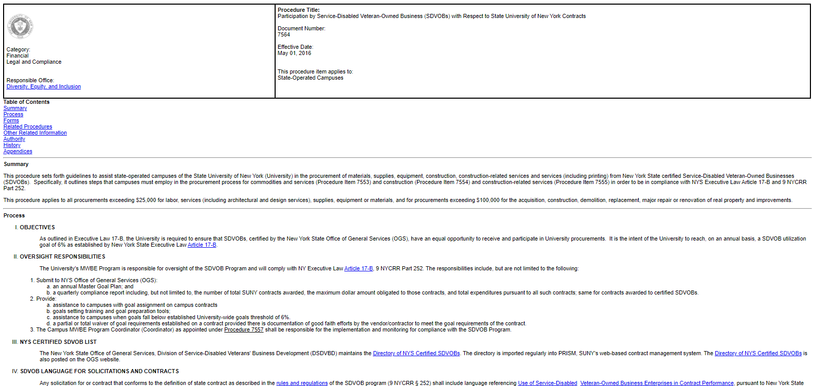 certified Service Disabled Veteran Owned Businesses. See SUNY Policies 7556, 7557