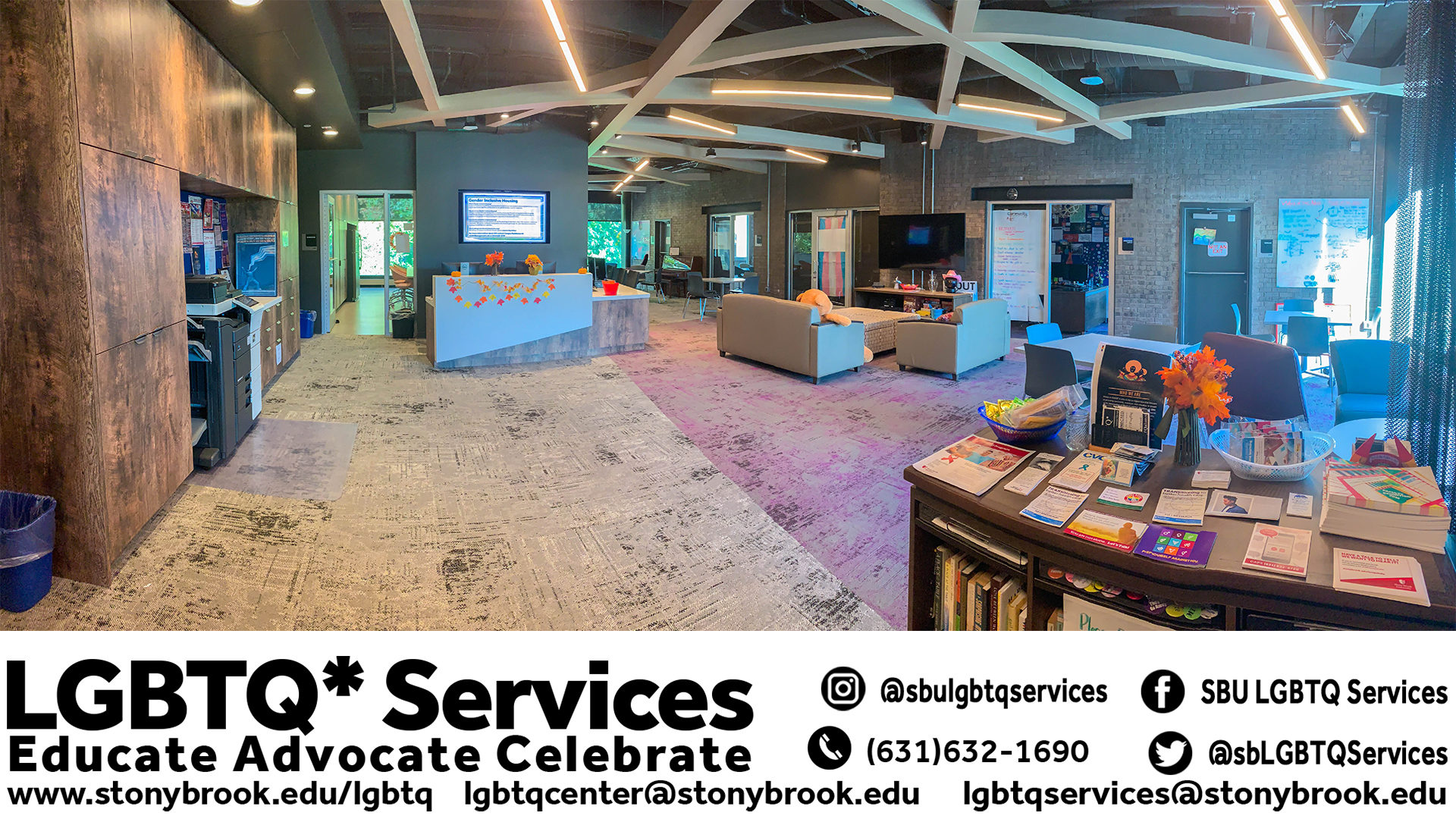 Even though the Virtual LGBTQ* Center is closed for the summer, LGBTQ* Services is still here for you! To connect, please call (631) 632-1690 or email lgbtqservices@stonybrook.edu.